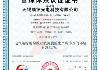 • 無錫順鉉光電環(huán)境管理體系認證證書(E)