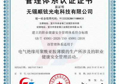• 無錫順鉉光電職業(yè)健康安全管理體系認證證書(S)